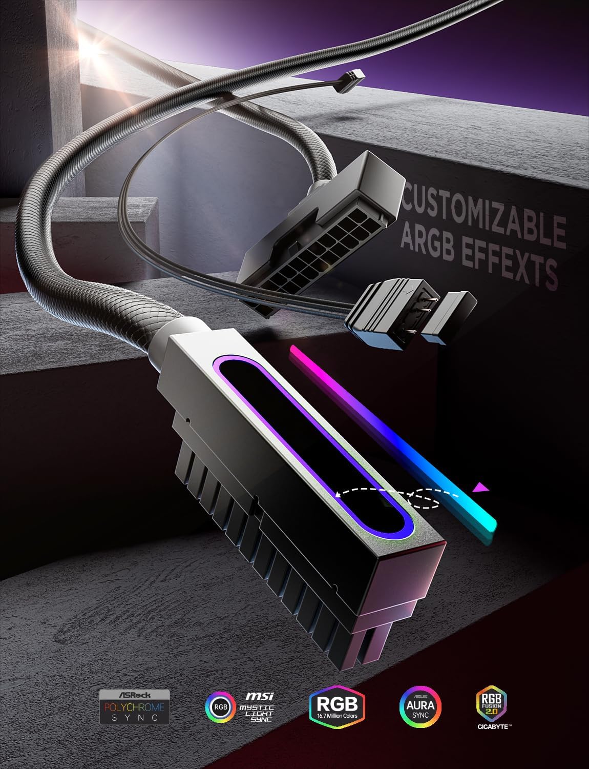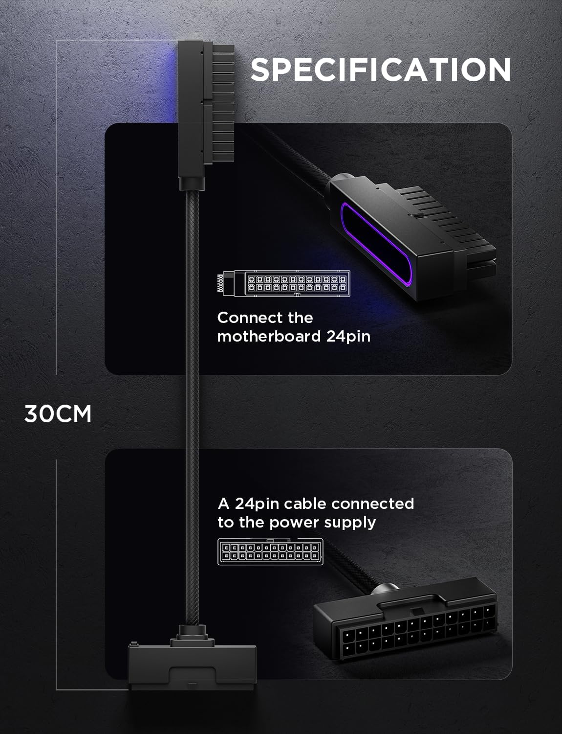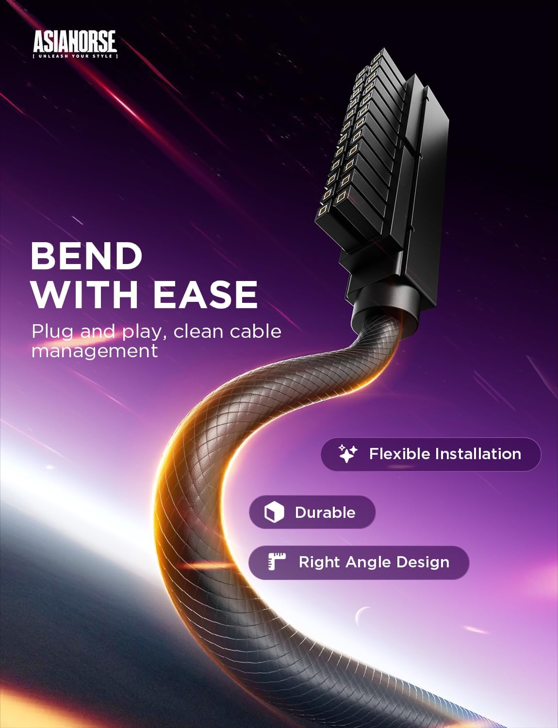 Asiahorse Hydrus ARGB PSU Extension Cable ( 24PIN 30CM Right ) – Black