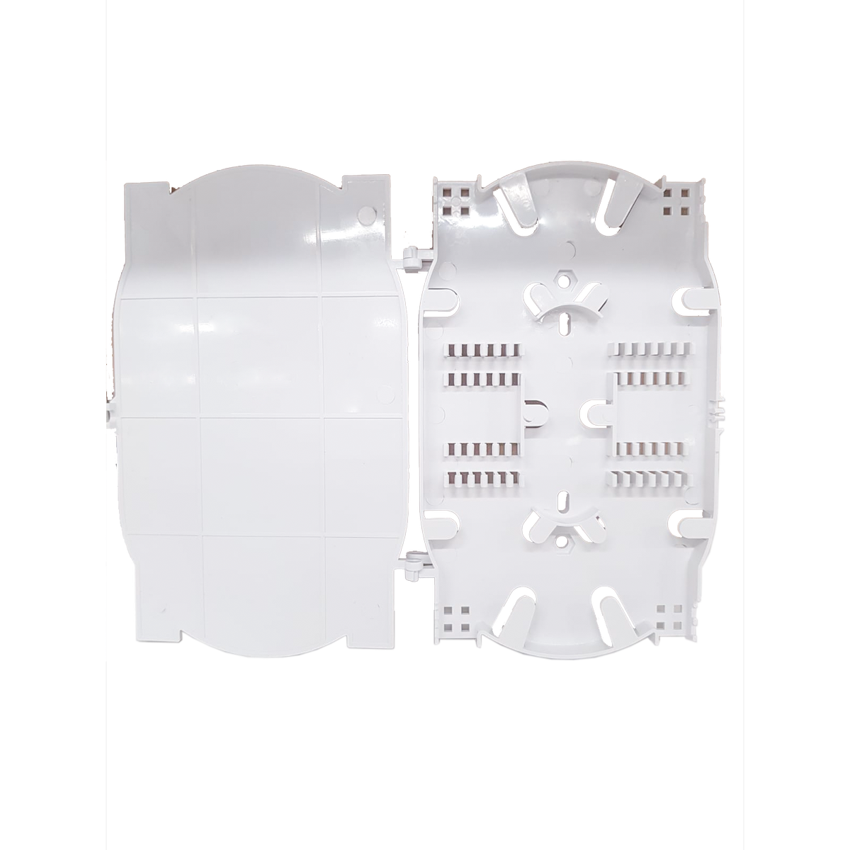 Mechanical fiber optic splice cassette designed to protect and organize fiber splices using a secure, heat-free sealing method. Suitable for reliable splice management in both indoor and outdoor network environments.