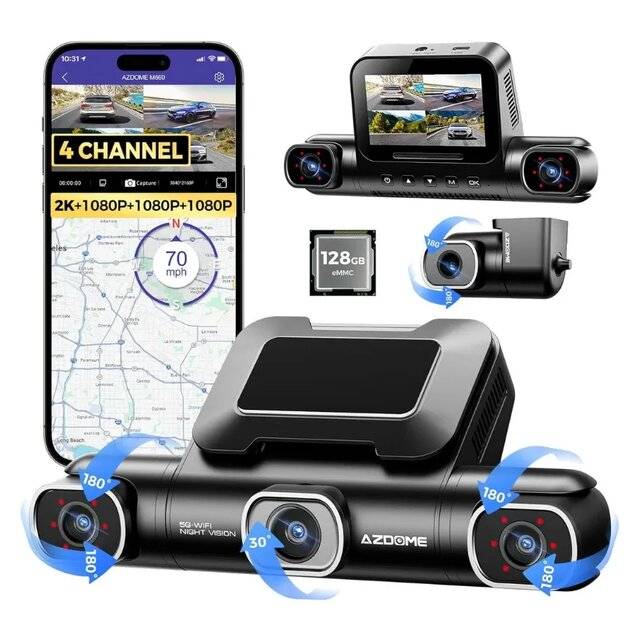 AZDome M660 4‑Channel Dash Cam 4K 128GB