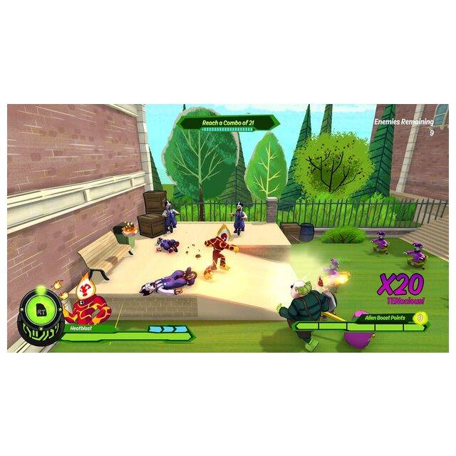 - Ben, Gwen, and Grandpa Max once again have their cross-country road trip in the Rust Bucket cut short by super villains and their evil, world-threatening plans. As Ben Tennyson, it’s up to you to save the world. Take on some of Ben’s most infamous enemies, including Zombozo, Queen Bee, and the Weatherheads. Unlock and transform into all ten of Ben’s incredible alien forms. Use each alien’s powerful combat moves to lay the beat-down on enemies with devastating combos, and solve puzzles with each alien’s unique abilities as you unravel exciting new stories in three all-new playable episodes.