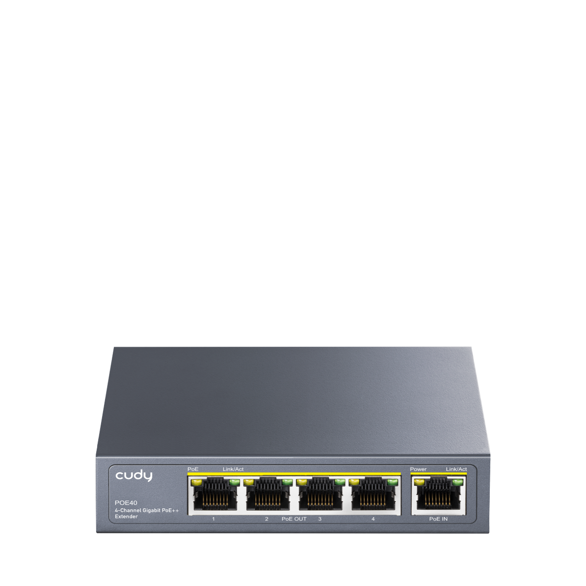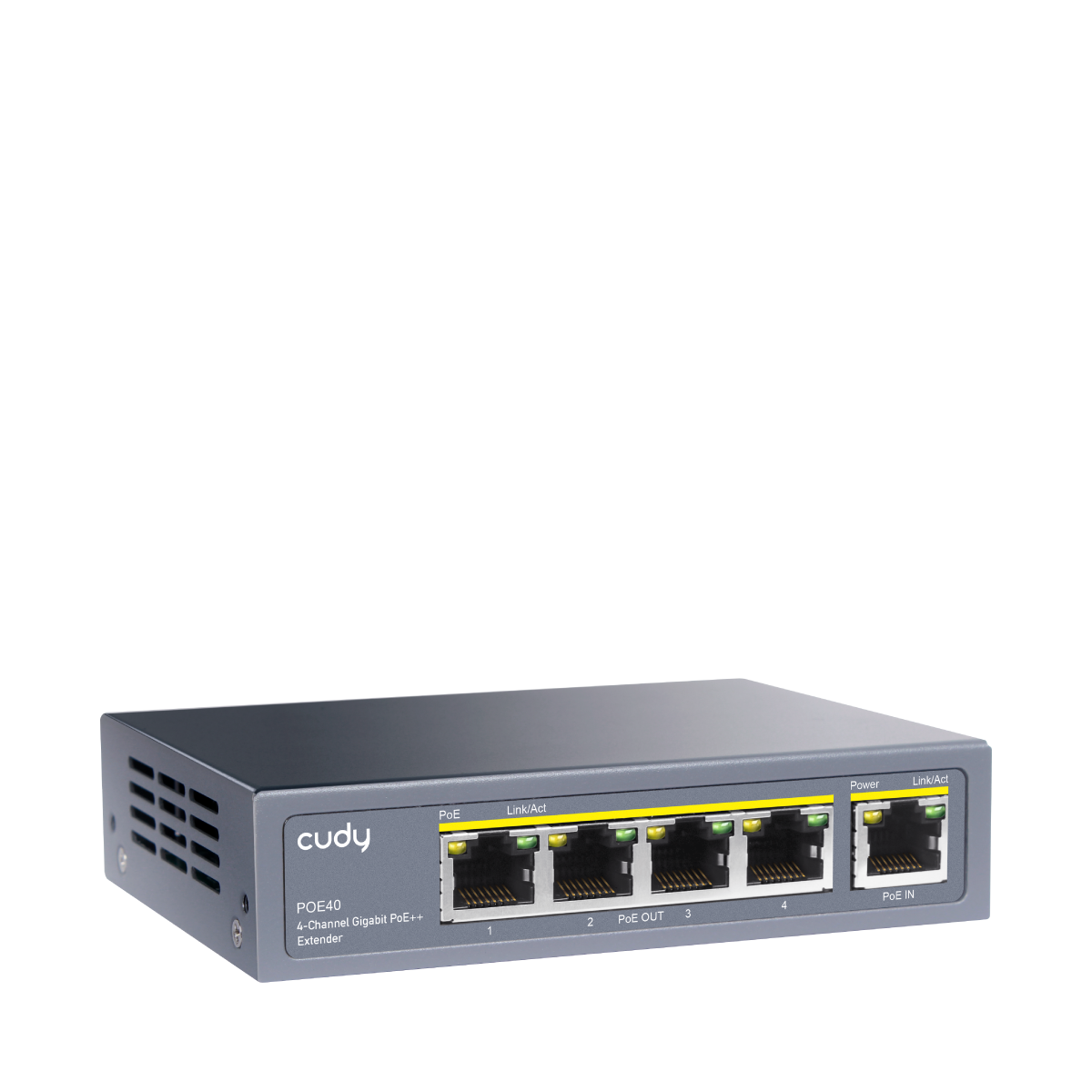 Cudy POE40 1.0 4‑Channel Gigabit PoE Extender (802.3bt/at/af, 1× In, 4× Out, +100 m Range, Wall‑Mount)