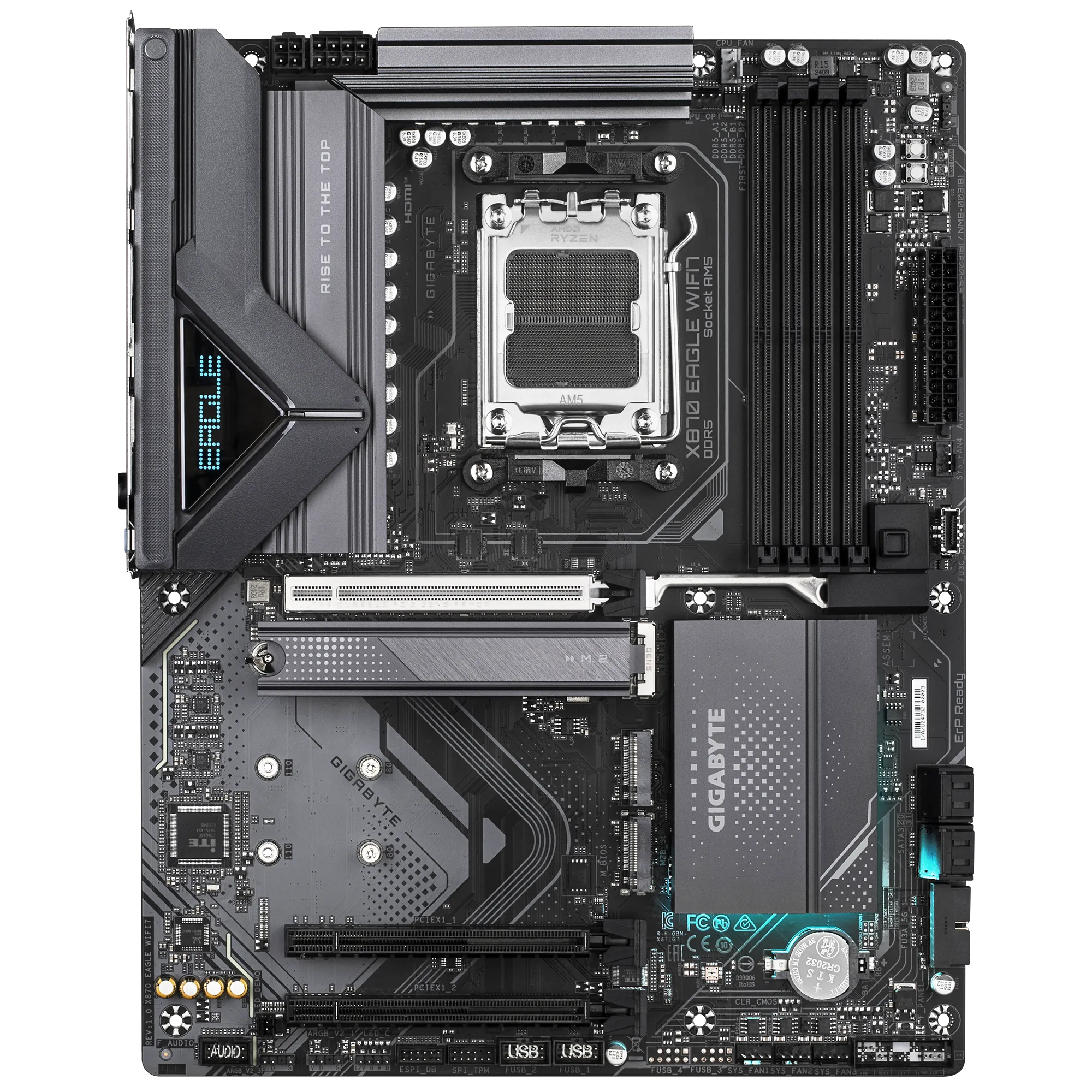 GIGABYTE X870 EAGLE WIFI7 Motherboard – AM5, DDR5, PCIe 5.0, Wi-Fi 7, USB4, 14+2+2 VRM, 3× M.2, EZ-Latch, 2.5GbE LAN, ATX