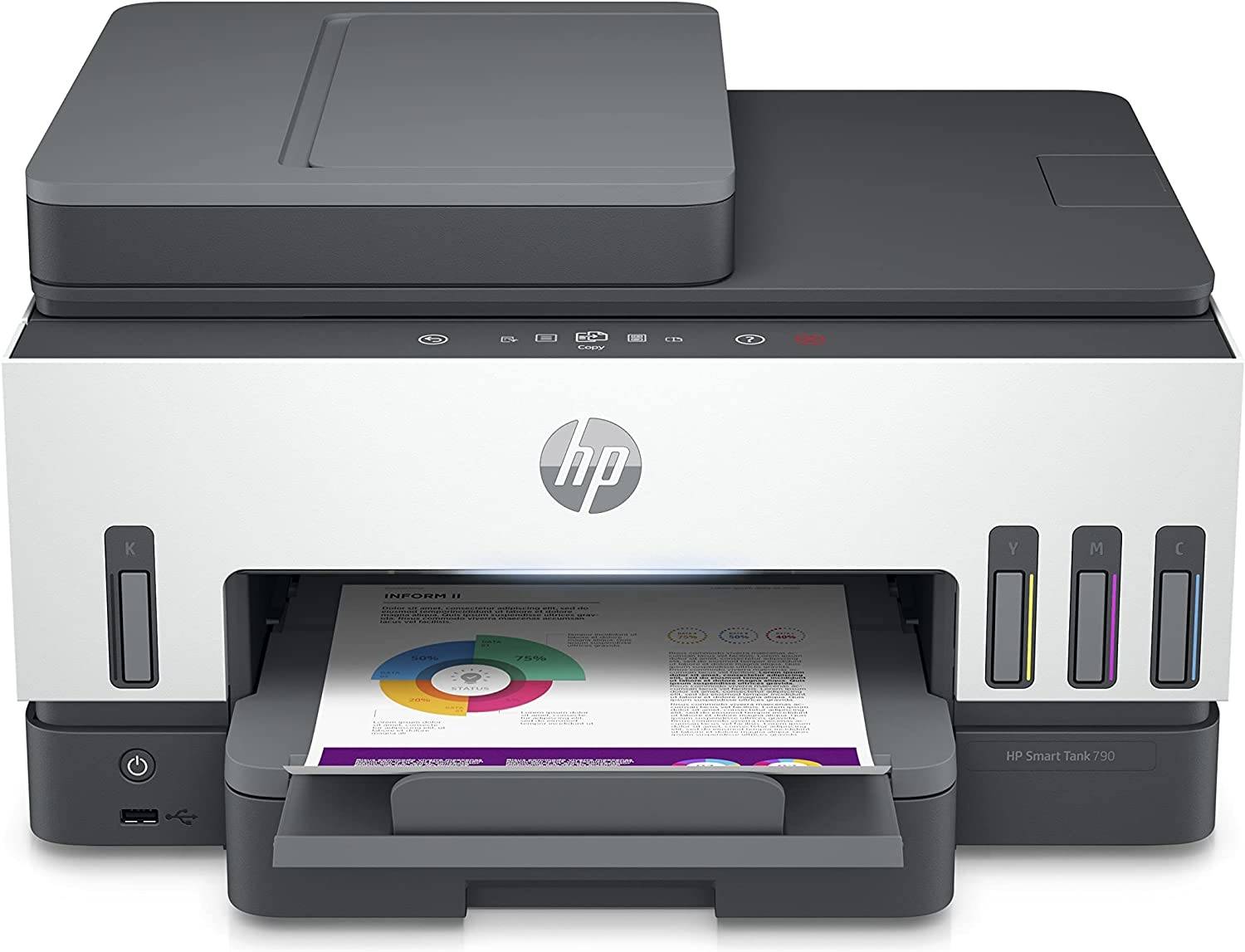 HP Smart Tank 790 All In One Printer, Auto Duplex Printing, W ADF & Magic Touch Panel, 23ppm Print Speed, USB WiFi Bluetooth LANMobile Printing, 100 Sheets Output Capacity, White-Gray