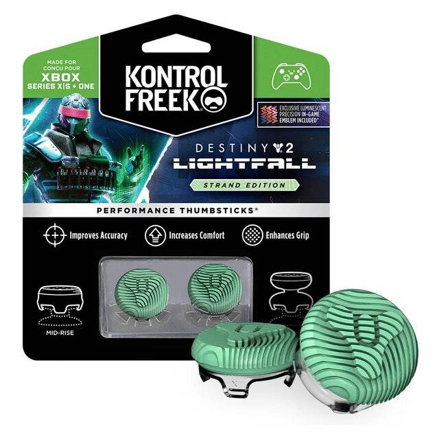 The official Destiny 2: Lightfall Performance Thumbsticks combine upgraded grip, movement, and precision to help you triumph in the face of impossibility. The new thumbsticks are designed specifically to match the vibrant green Strand and to immerse you in the neon metropolis of Neomuna. Includes exclusive “Luminescent Precision” in-game emblem.