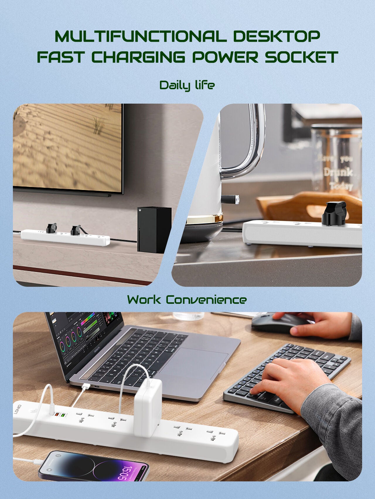LDNIO SC5319 Multi Socket Extension Lead with 5 AC 3 USB Power Socket Plug Extender 2M