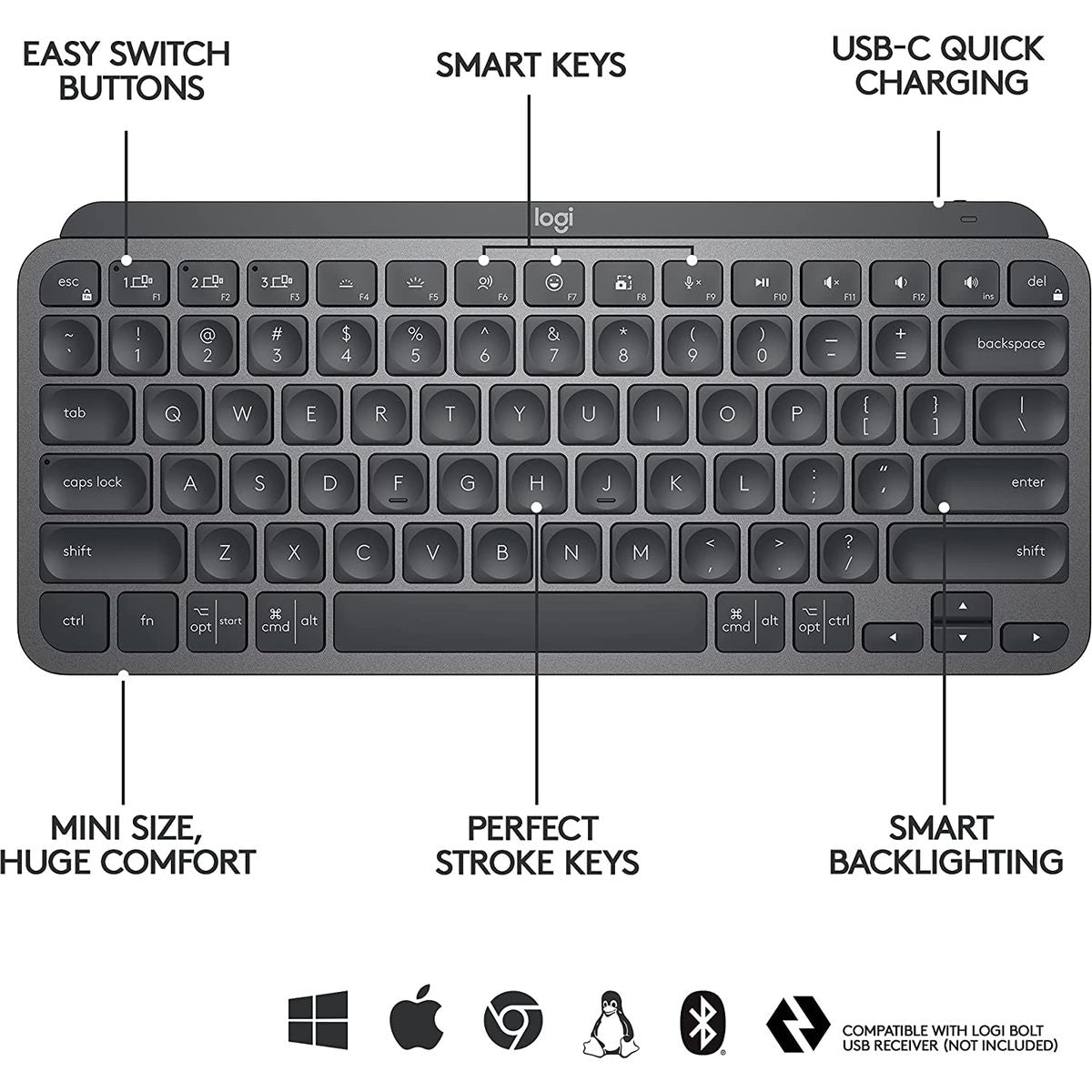 Logitech MX Keys Mini Wireless Keyboard – Black