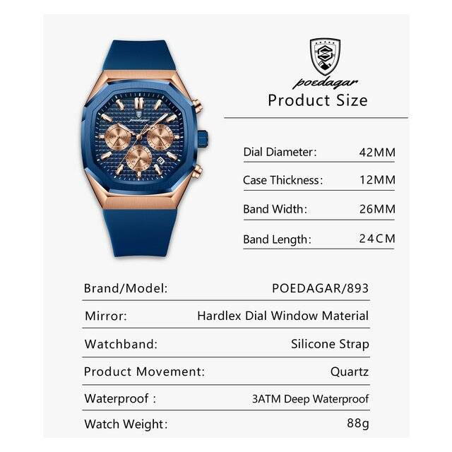 Poedagar 893 Watch (Rose Gold – Black)