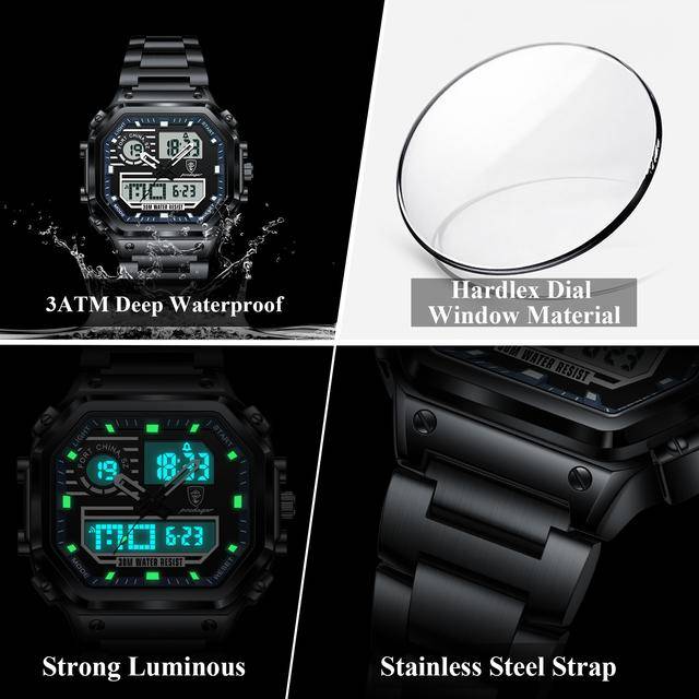 - Feature: Alarm, Day/Date, Chronograph, Led Display, Luminous, Waterproof