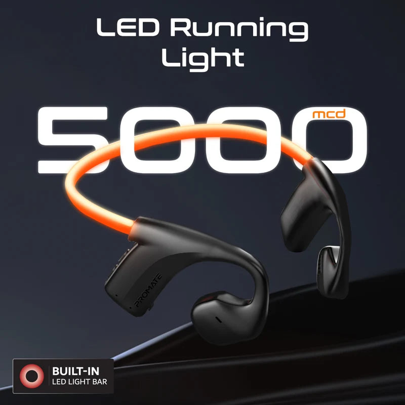 - Light up your musical journey with Promate’s RippleGlow, where cutting-edge technology meets sleek design. This open-ear wireless neckband not only delivers superior HD sound quality through innovative AudioConduct™ Technology, but also features an LED Running Light that elegantly glows around your neck, keeping you visible and safe in the dark whilst adding a touch of brilliance to your style. Featuring Multi-Point pairing, seamlessly connect with two devices simultaneously and switch between them, while enjoying the ergonomic comfort and secure fit, perfect for any activity. With an impressive 18 hours of playback, crystal-clear hands-free microphone, low-battery reminder and intuitive remote controls, RippleGlow ensures you’re always in control. Moreover, the open-ear design allows you to stay aware of your surroundings and potential hazards whilst enjoying your favourite tunes, making RippleGlow the ultimate blend of functionality and flair for those who live life on the go.