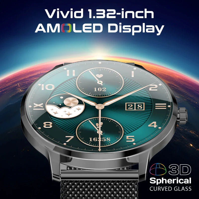 - Display: 1.32″ Curved AMOLED, 466 × 466 resolution, 3D spherical glass