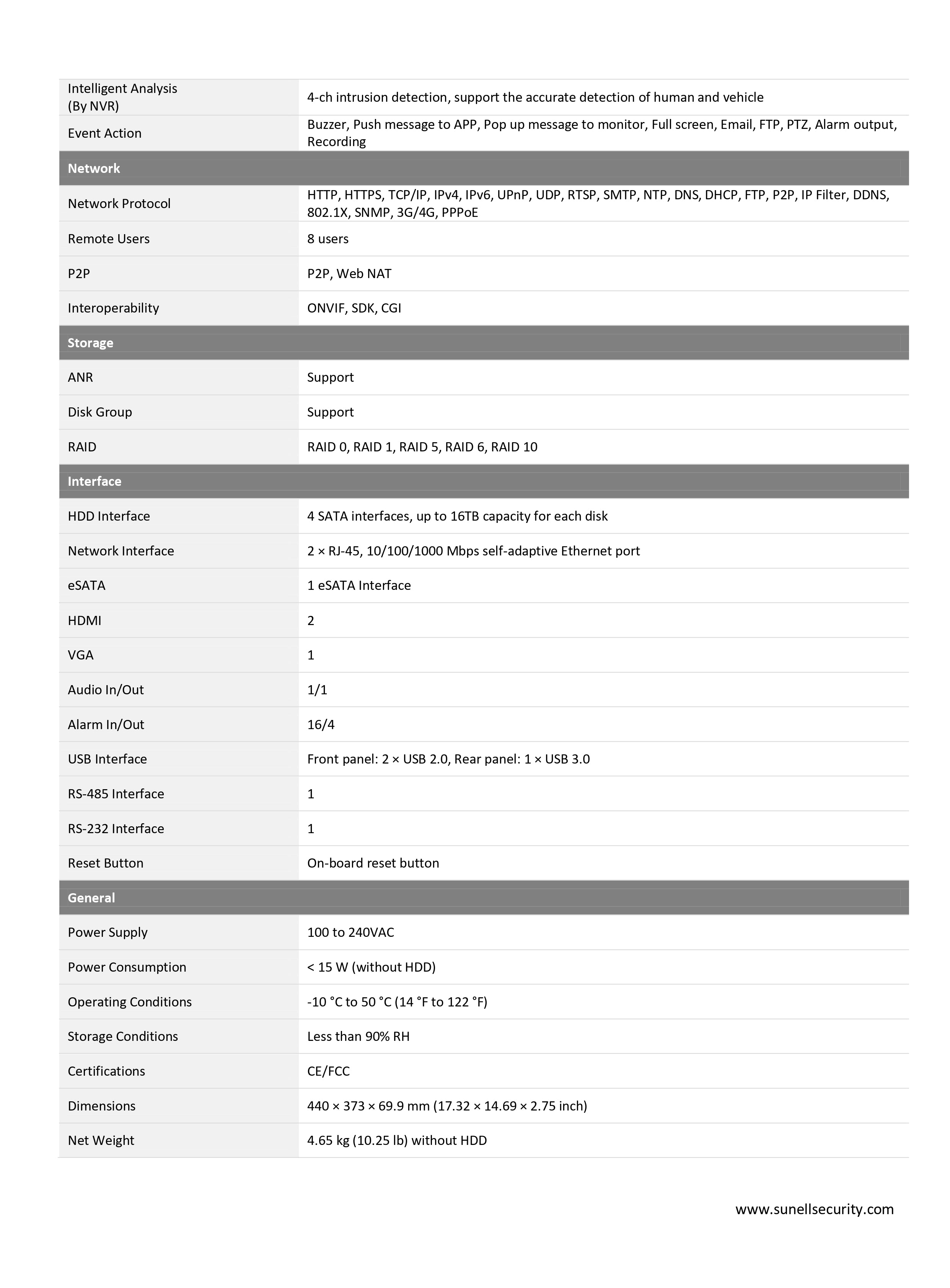 Sunell 32-Channel 4HDD AI NVR with 320Mbps Bandwidth, 4K HDMI, RAID Support, Face/Vehicle Recognition & Smart Detection