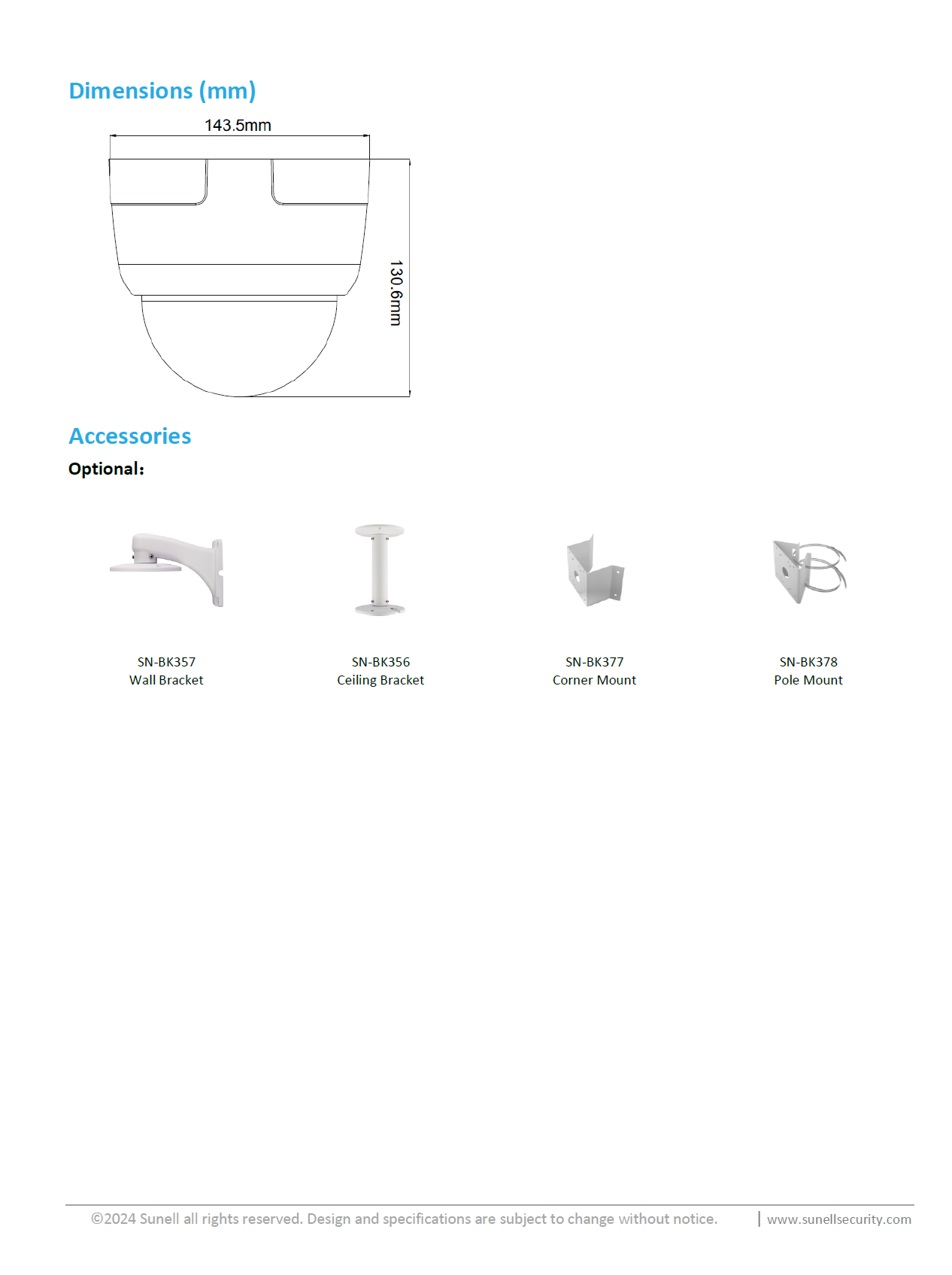 - Dimensions: φ143.5 × 130.6 mm (5.65 × 5.14 inch)