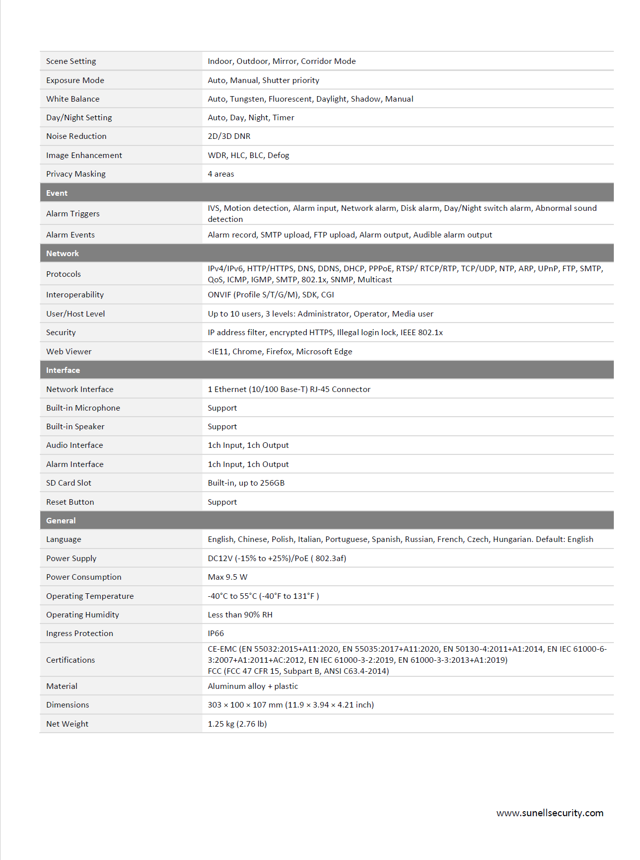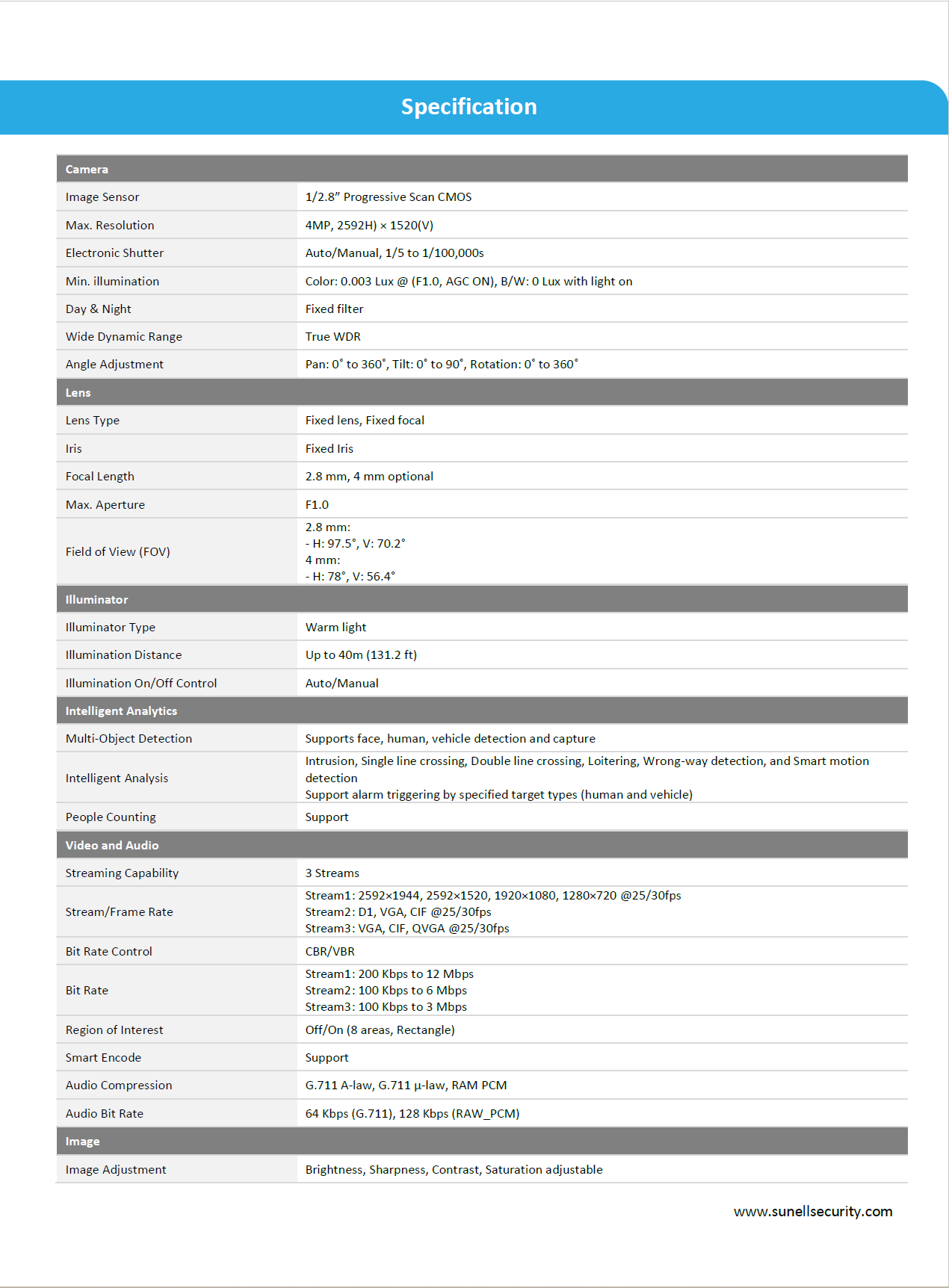 - Image Sensor: 1/2.8” STARVIS™ CMOS