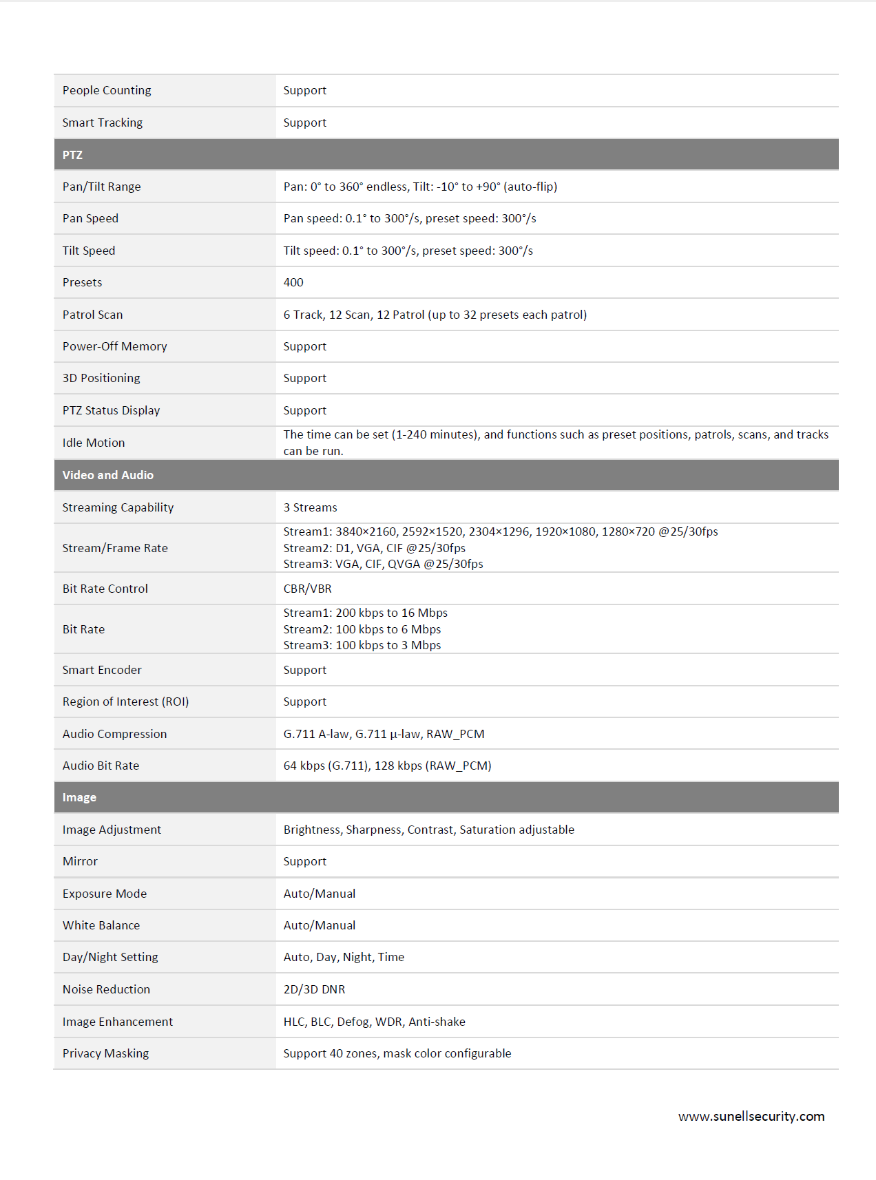 Sunell 8MP 40x Starlight IR PTZ Camera with AI Detection & 500m IR Range