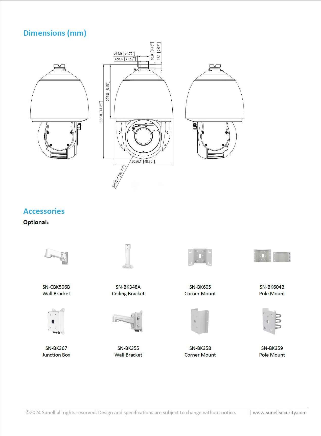 - Dimensions: φ226 × 362.8 mm (8.9 × 14.28 inch)