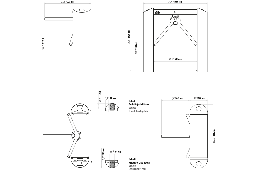 TANSA LTT 303 E Tripod Turnstile – Cylindrical Stainless Steel, Bidirectional, Fail-Safe, Emergency Drop Arm