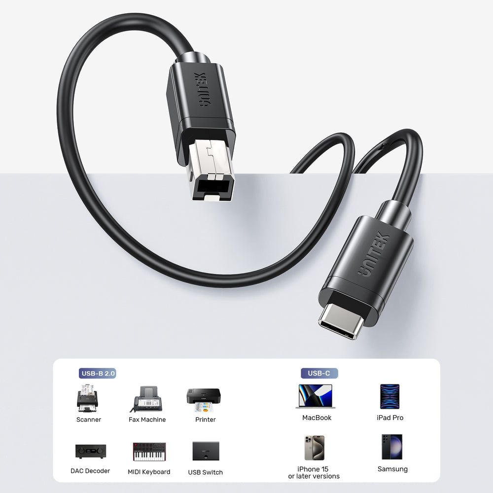- Wide Compatibility: UNITEK USB-C to USB-B data and charging cable supports the connection between printers, scanners, fax machines, and most audio equipment such as keyboards (e.g. Yamaha), guitar amps (e.g. Boss), DAC converters, and DJ controls with your USB-C laptop.