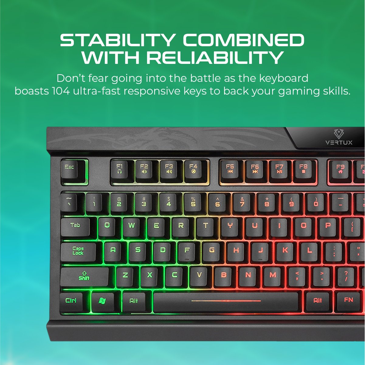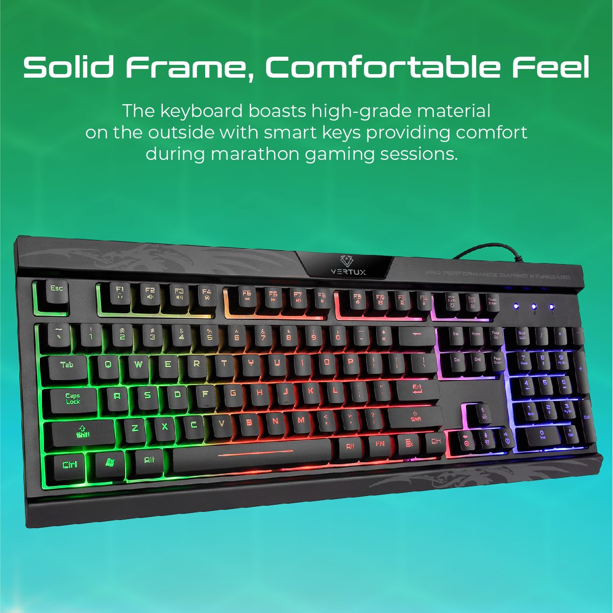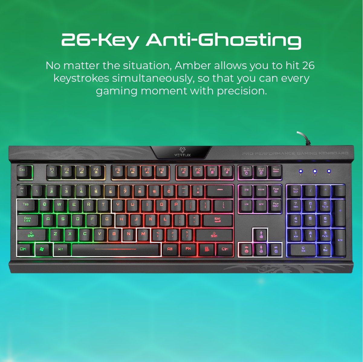 VERTUX Amber Pro Performance Gaming Keyboard – English/Arabic