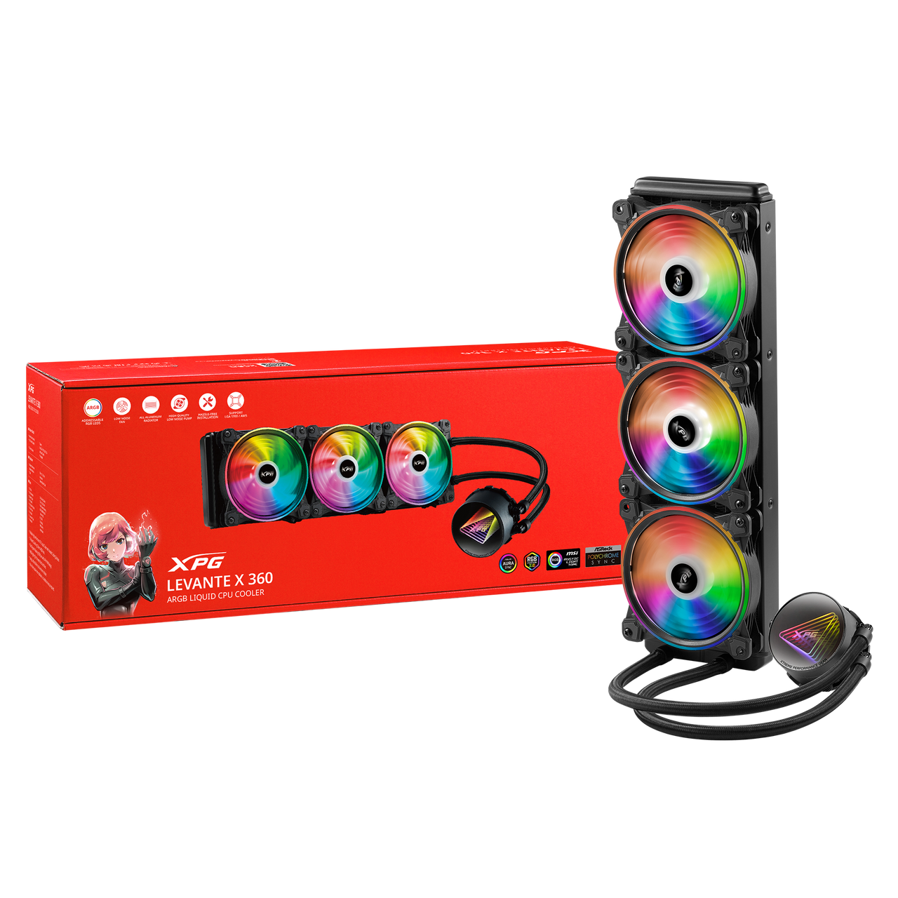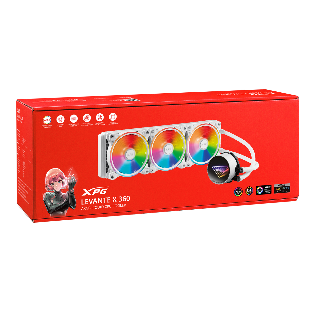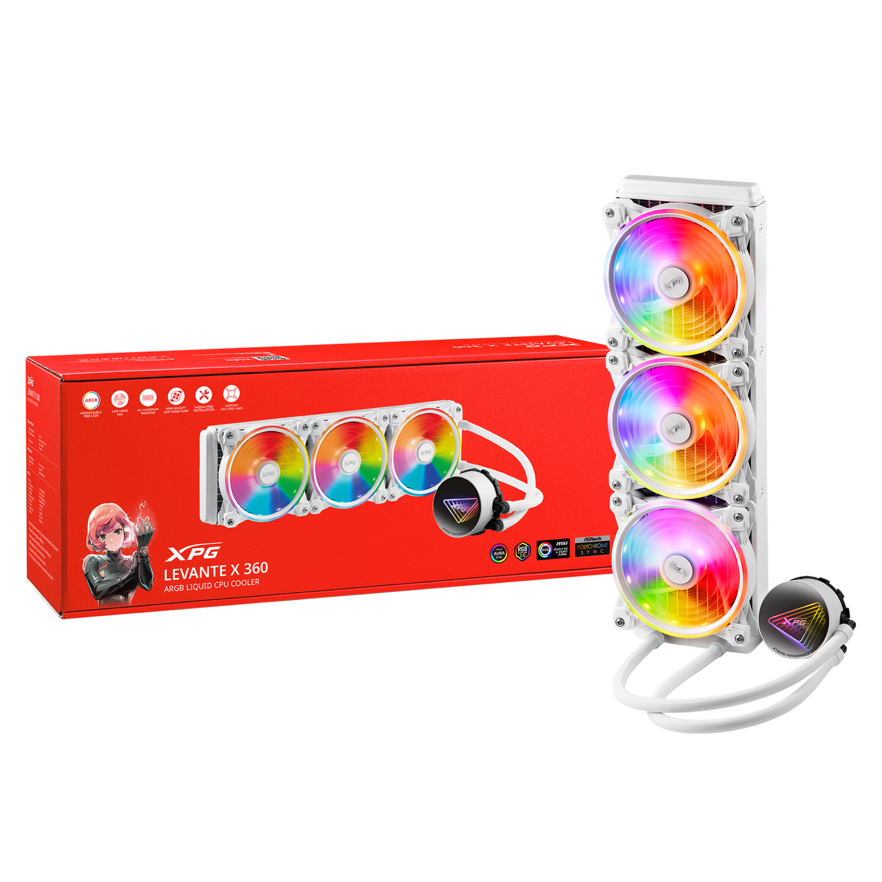 XPG Levante X 360 All-in-One ARGB CPU Liquid Cooler – 4.72 Maximum Fan Diameter -2000 RPM – Fluid Dynamic Bearing – 4-Pin – White