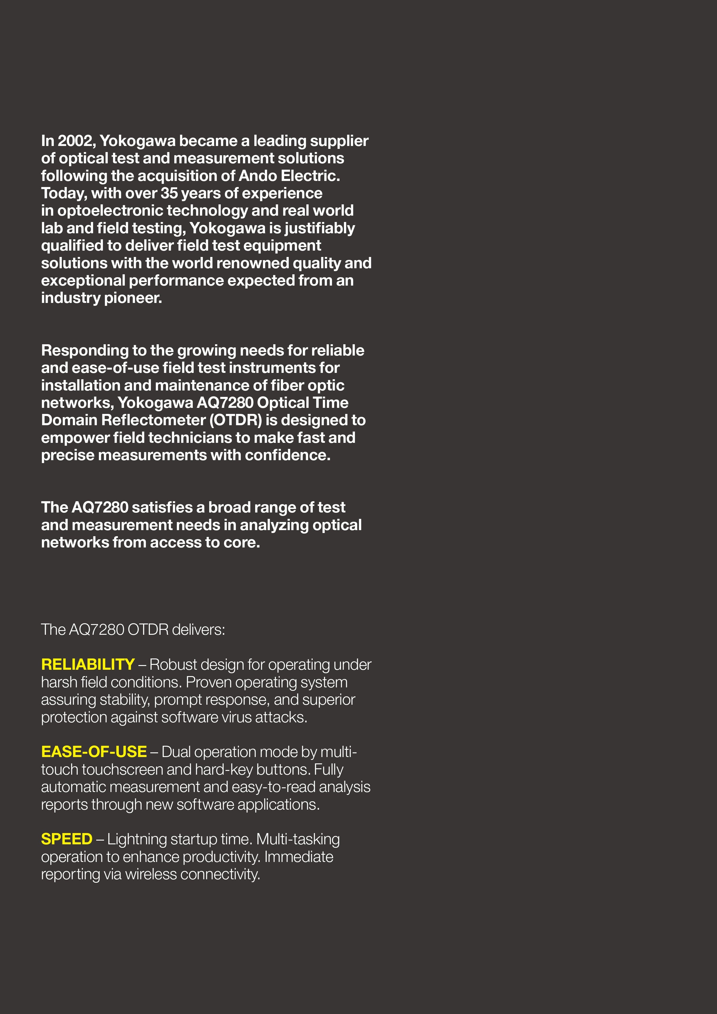 Yokogawa AQ7283H Handheld OTDR 1310/1550/1625nm, High-Performance Optical Fiber Tester with Smart Mapper & 15-Hour Battery Life