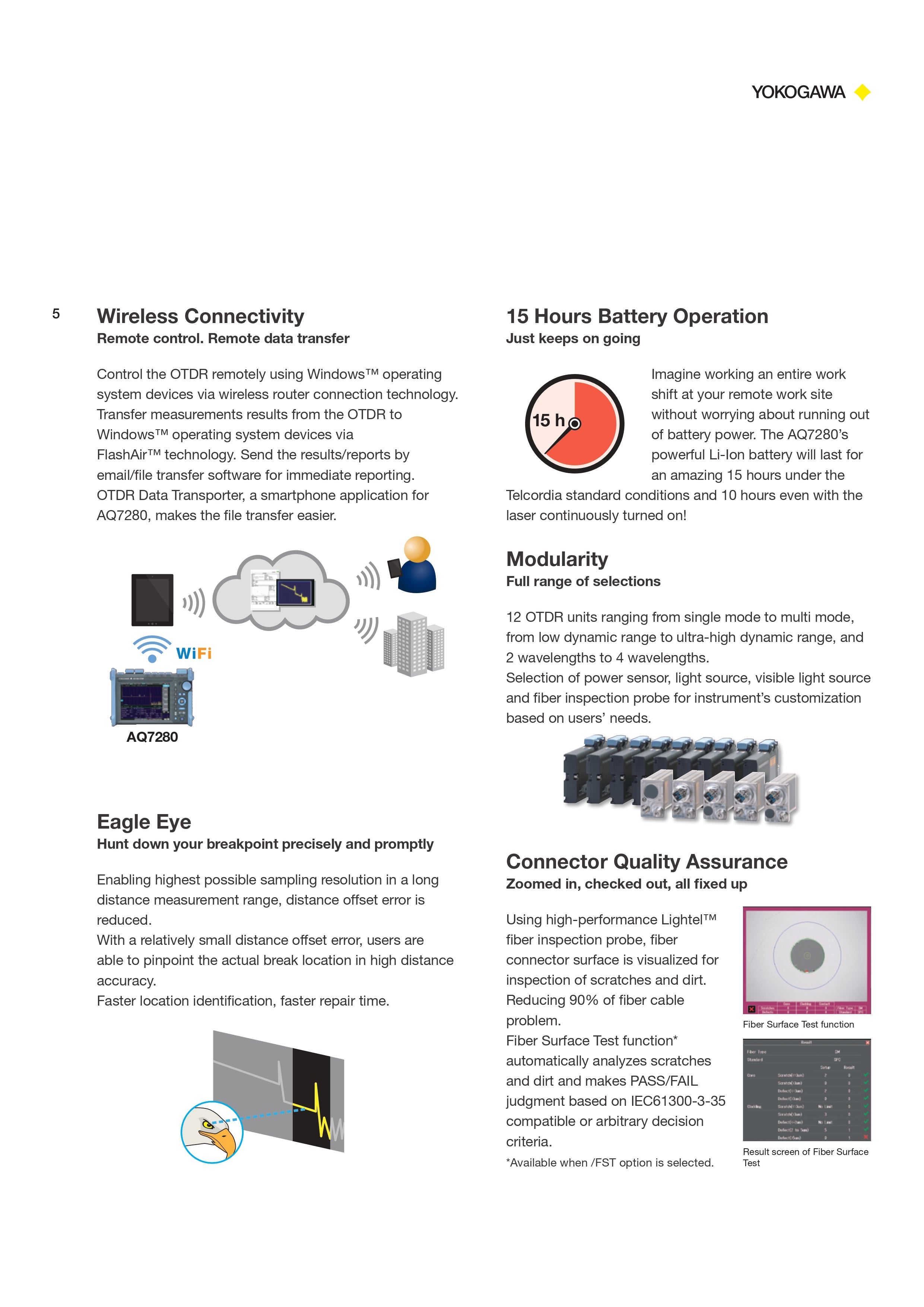 Optional features such as a Power Checker (/PC), Stabilized Light Source (/SLS), and Fiber Surface Test (/FST) are available to extend testing capabilities. The AQ7283H is a top-tier tool trusted by professionals worldwide for advanced OTDR diagnostics.